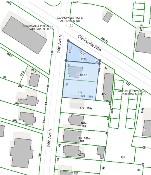 This listing includes 2018, 2020, & 2022 24th Avenue North. Located at the intersection of 24th Ave. N and Clarksville Pike. Excellent mixed use development opportunity! CS, Multi-Overlay and UZO zoning in place.