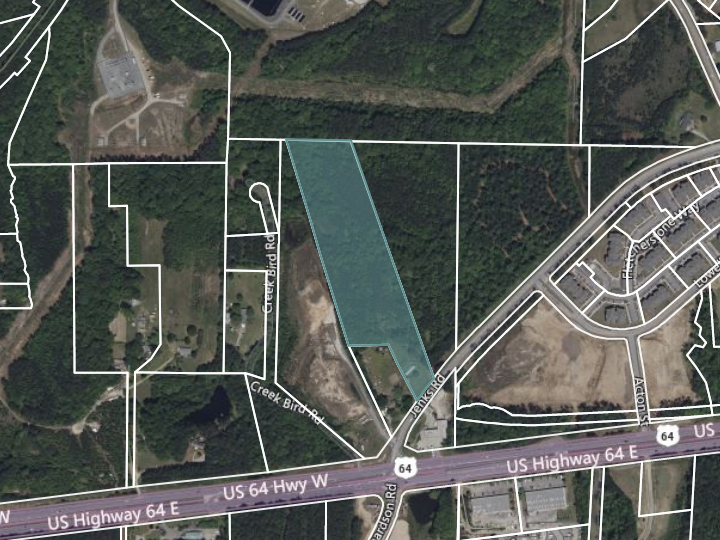 This parcel sits along Jenks Road just off US-64 highway with a future land use code to include commercial or office complexes. The property has excellent visibility and access to major triangle corridors such as I-540, US 64, and NC 751 and is within 4 minutes of all major retail and restaurant amenities.