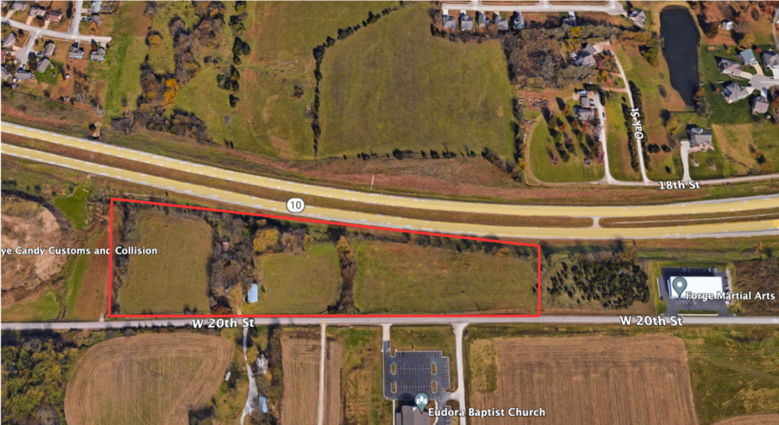 9.9 acres of commercial development ground. Rapidly growing Eudora with new schools and middle school just down the road. Brand new subdivision approved across the street. Can be broken down into one to three-acre parcels. Excellent and Long frontage to K10 Highway. Sellers are open to creative offerings.