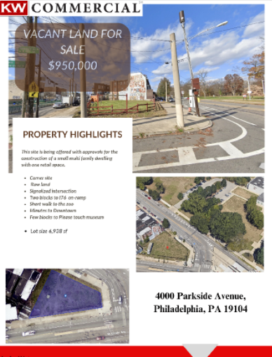 This site is being offered with approvals for the construction of a small multi family dwelling with one retail space.