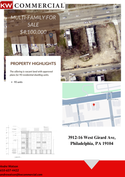 The offering is vacant land with approved plans for 90 residential dwelling units.